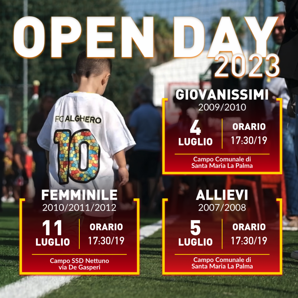 FC ALGHERO: TUTTO PRONTO PER GLI OPEN DAY GIALLOROSSI